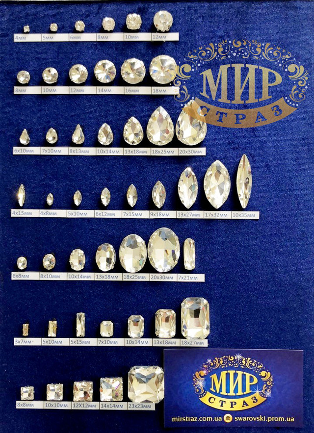 Цапи найчастіше бувають срібного і золотого кольорів, в кожному з них стрази виглядають і виблискують по-різному. Інтернет-магазин "Світ страз" пропонує найбільший в Україні вибір якісних кришталевих страз в оправі. Ми можемо порадувати Вас безліччю різноманітних кольорів: кришталь, топаз, сапфір, аметист, кобальт, веселка та інші. Кристали мерехтять і іскряться, немов коштовне каміння. У нас Ви зможете придбати пришивні стрази в цапах не тільки різних кольорів, але і різних форм: овальної, круглої, квадратної, прямокутної, а так само у вигляді крапельок, човників, і навіть сердечок. Крім кришталевих, в нашому асортименті є акрилові стрази – це хороша бюджетна альтернатива кришталевим стразів.