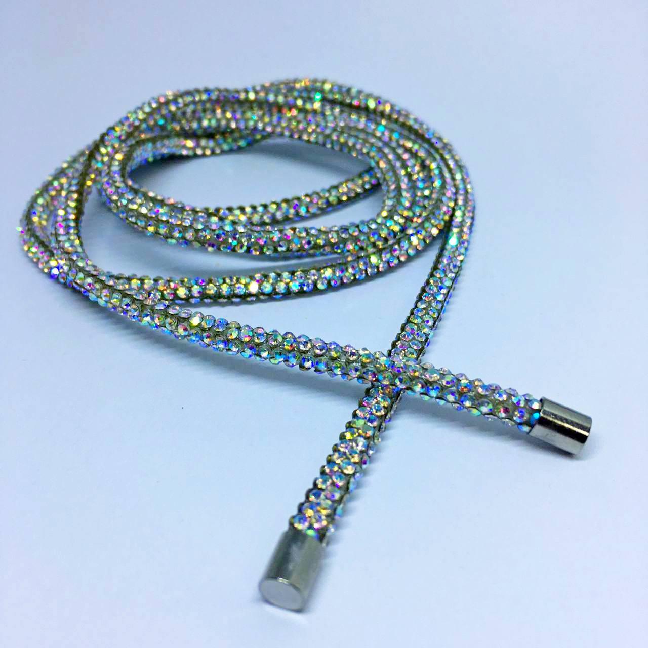 Стразовий шнурочок з металевими на кінцевиками використовують як поясок, кольє на шию, шнурки у взуття, декор для сумки та ін.