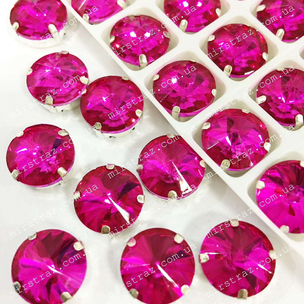 Високоякісні кришталеві стрази в срібних цапах. Розмір 12 мм. Цвет Fuchsia