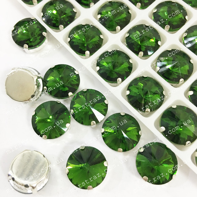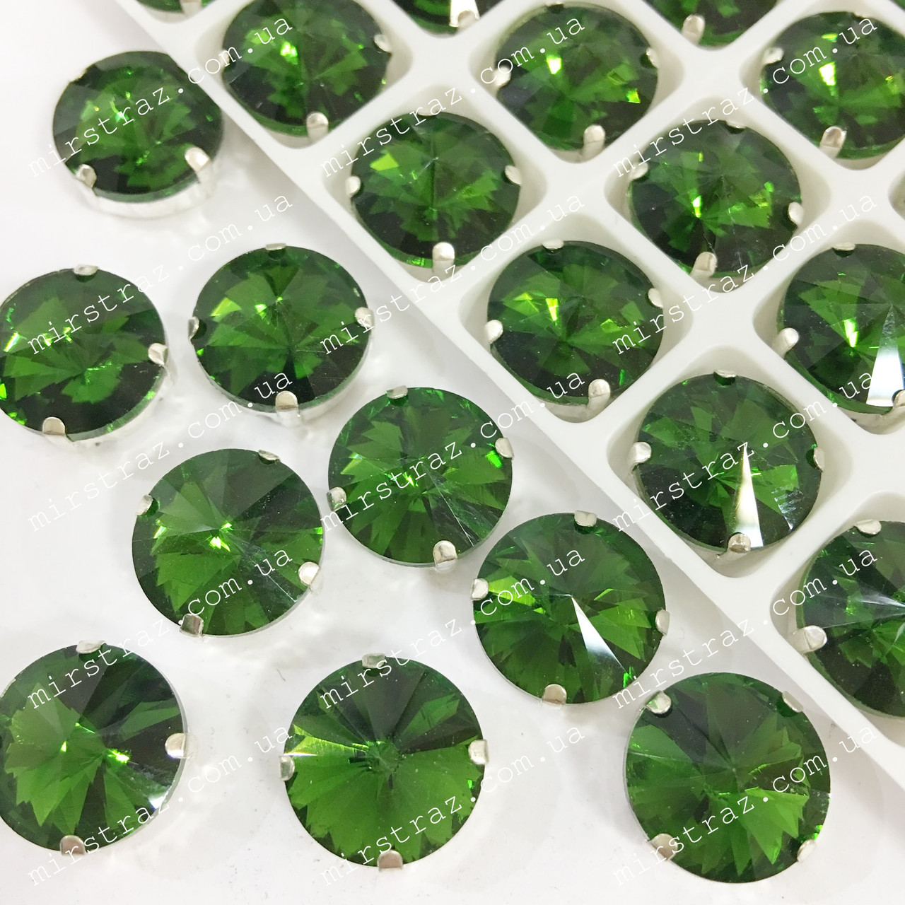 Високоякісні кришталеві стрази в срібних цапах. Розмір 12 мм. Колір Green