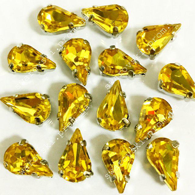 Високоякісні кришталеві стрази в цапах. Капля. Розмір 8x13мм Колір — Topaz