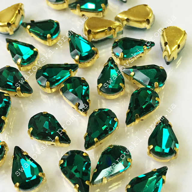 Хрустальні стрази в ланцюгах золотого кольору.Квіт Emerald 8x13мм