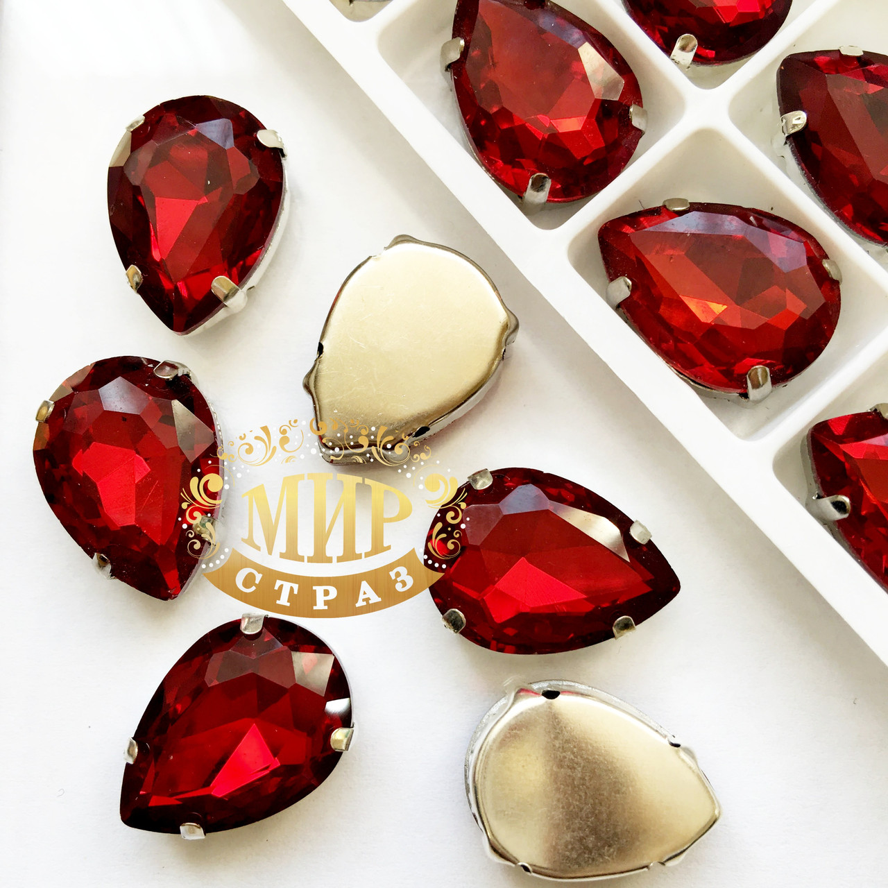 Високоякісні стрази в цапах. Розмір 13x18мм. Колір Siam