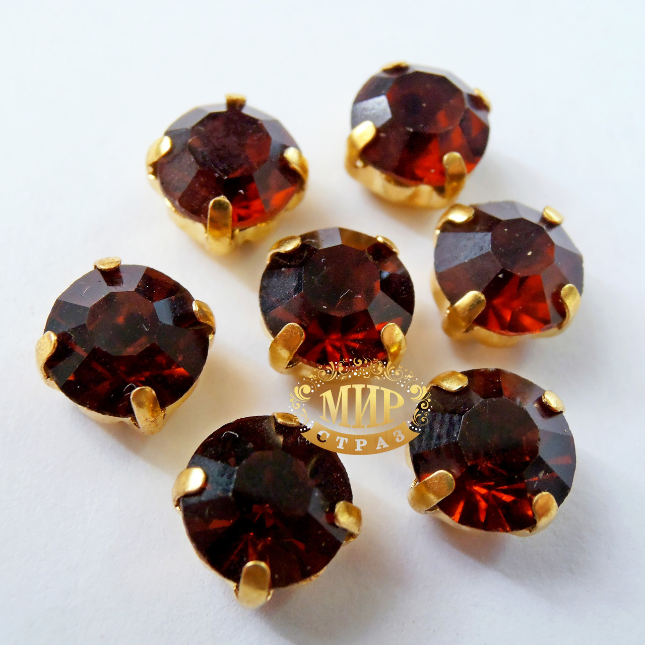 Високоякісні круглі (риволі) кришталеві стрази в золотих цапах Розмір каменю 6 мм