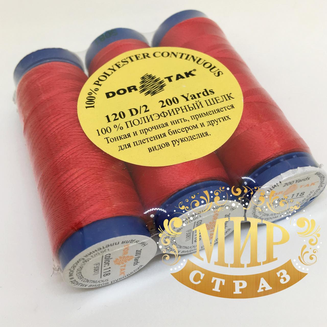 Нитки фірми Dor Tak використовують у всьому світі як у швейній промисловості, так і для різних видів рукоділля. Їх дуже часто застосовують для плетіння з бісеру та скла, з'єднання потайних швів, пришивання стразів, виготовлення хутряних виробів, вишивання бісером картин і панно. Нитки поліефірного шовку виготовлені зі 100% високоякісного поліестерового волокна, вони тонкі та дуже міцні. Їхнє поєднання фізико-хімічних властивостей гарантує чудовий результат у будь-якій галузі використання ниток. Крім чудових експлуатаційних характеристик, поліефірні нитки мають дуже багату палітру колірних відтінків. Серед них є можливість підібрати необхідний колір для реалізації будь-яких ідей і побажань. Кольори особливо стійкі до хімічних впливів під час прання, не блякнуть на сонці. Прасувати можна за температури до 150 градусів. Нитка намотка складається з 183 метрів нитки.