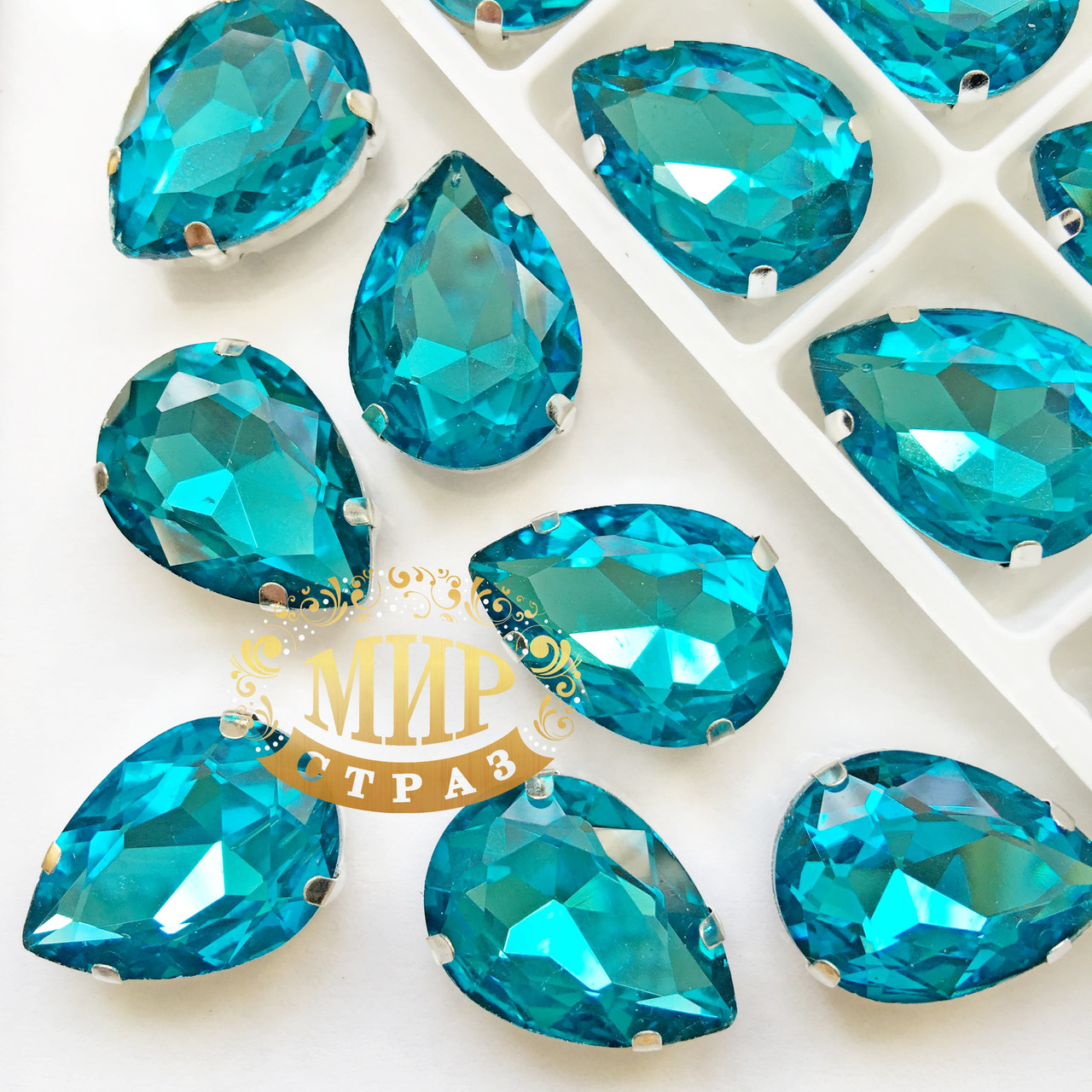 Високоякісні стрази в цапах. Розмір 10*14 мм. Колір Aquamarine