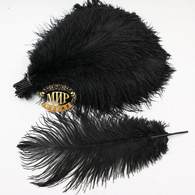 Махове перо з крила африканського страуса. Колір Чорний. Розмір 40-45 см