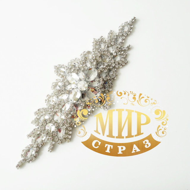 У композиції використані стрази кольору Crystal. Основа кришталевого декору метал срібного кольору. Кріпиться на будь-яку поверхню за допомогою гарячого преса або праски.