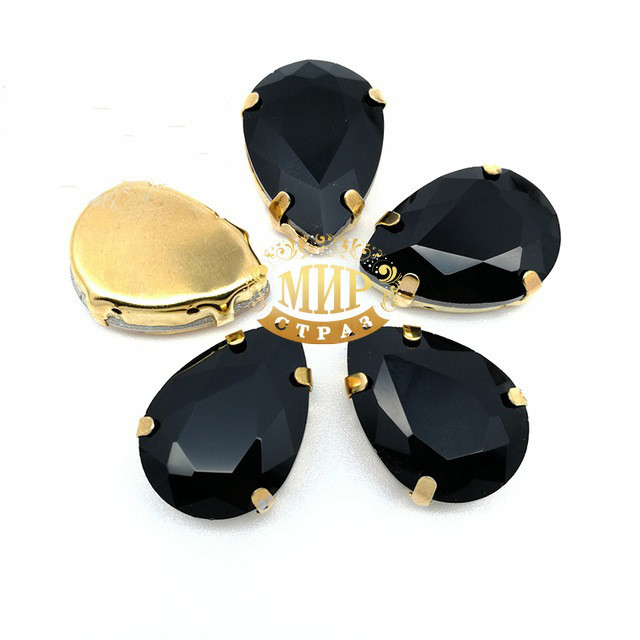 Кришталеві стрази в ланцюгах золотого кольору.Кольор Jet, розмір 13x18мм