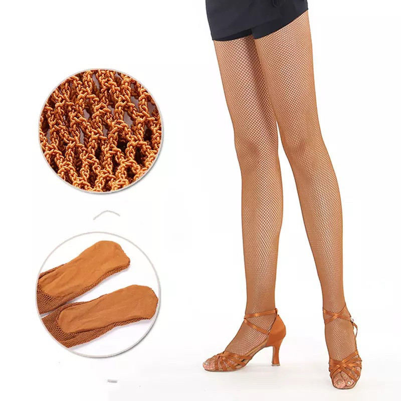 Жорстка прогумована сітка має ефект утягування й корекції обрисів ніг. А їхні компресійні властивості чудово сприяють зниженню втоми м'язів. Для виробництва таких колгот загалом використовується поліамід або він же нейлон, з додаванням еластану, або ще кажуть — спандекс. Їх виготовляють із суцільною ущільненою підошвою без сіточки, для комфорту ніг, щоб нічого не давило та не натирало, і забезпечувало гарну рухливість стопи. Зазвичай колірна гама представлена в чорному, тілесному, карамельному або кавовому відтінках. Отже, можна підібрати колір світліше або зимити засмагу, взявши колготи середнього тону. Крім того, колготки можна прикрасити стразами для ефектності або придбати вже готові з блискучими кристалами. Колготи підходять для таких танців, як-от пасоробль, самба, румба, латина, джазовий танець та інші.